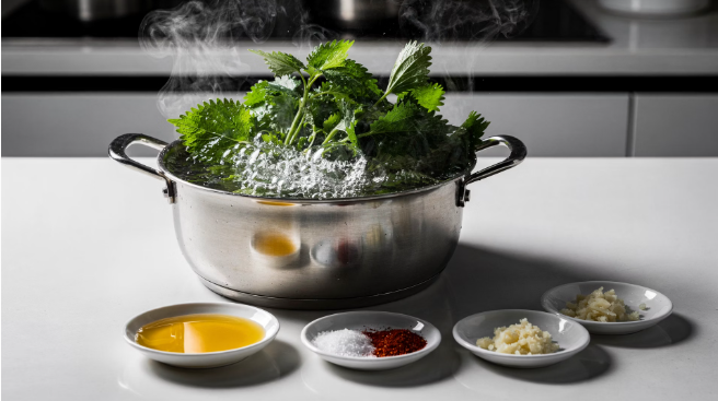 - 취나물 손질 및 데치기: 취나물은 시든 잎을 제거하고 깨끗이 씻은 후, 끓는 소금물에 넣어 1~2분 정도 데쳐주세요. 너무 오래 데치면 물러지니 주의! 데친 취나물은 찬물에 헹궈 물기를 꼭 짜고 3~4cm 길이로 썰어줍니다.