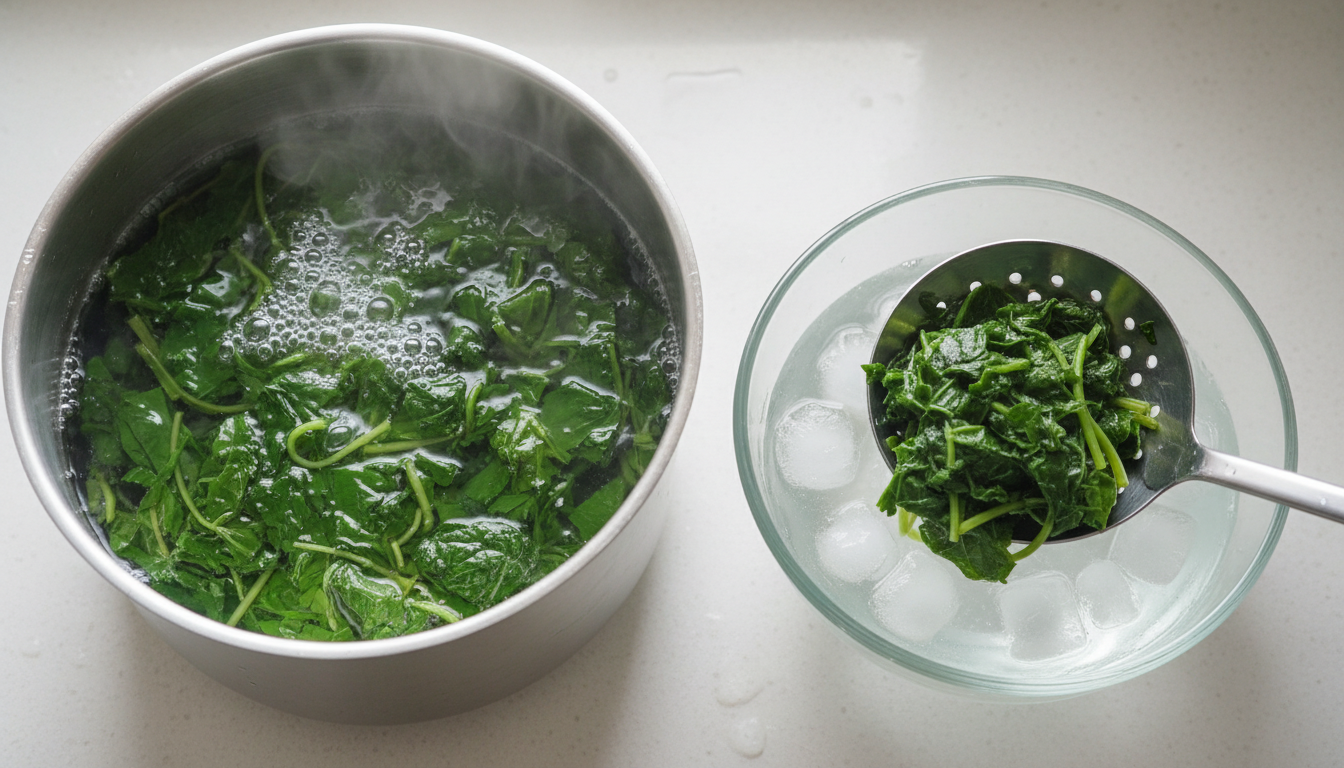 - 황금 삶는 시간: 줄기 먼저 10초 후 전체 3~5분 삶고 바로 찬물 샤워!