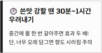 - 설탕 한 꼬집: 쓴맛을 잡아주고 감칠맛을 더해줍니다.