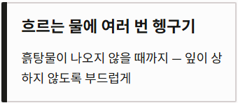 | 물기 짜기 | 적당히 촉촉하게, 양념이 잘 배도록 | - |