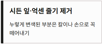- 잎 색깔: 선명한 초록색을 띠고, 시든 부분 없이 생기가 도는 것이 좋아요. 누런 잎이 많거나 검게 변한 부분은 피해주세요.