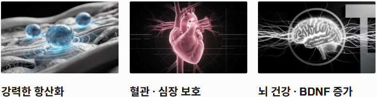 - 강력한 항산화 작용: 활성산소를 직접 중화할 뿐만 아니라, 신체 자체의 항산화 효소 생성을 자극하여 세포 노화를 방지합니다.