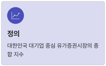 - 정의: 대한민국을 대표하는 대기업들이 상장된 유가증권시장의 종합 지수입니다.