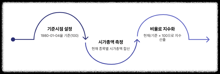 코스피 지수는 어떻게 계산될까요? 현재 우리나라는 '시가총액식 주가지수' 산출 방식을 사용합니다. 이는 특정 시점(1980년 1월 4일)의 시가총액을 100으로 잡고, 현재의 시가총액이 얼마나 변했는지를 점수로 나타내는 방식입니다.