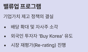 - 밸류업 프로그램의 결실: 정부와 거래소가 추진해 온 기업가치 제고 노력이 배당 확대와 자사주 소각으로 이어지며 외인들의 강력한 '바이 코리아'를 유도했습니다.