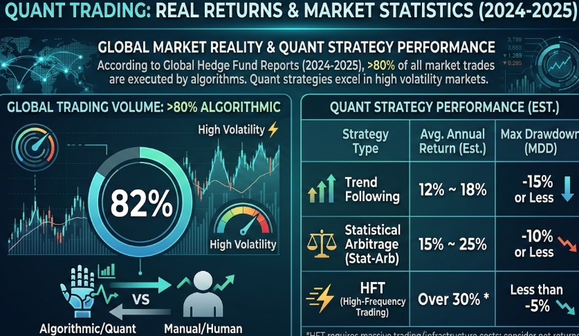 3. 퀀트 트레이딩의 실제 수익률과 시장 통계는? 📈