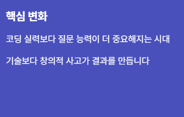 - 결과물의 설계도: 어떤 프롬프트를 입력하느냐에 따라 AI의 출력값이 '초등학생 수준'이 될 수도, '박사급 전문가 수준'이 될 수도 있어요.