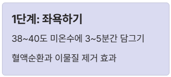- 좌욕하기: 38~40도의 미온수에 3~5분간 엉덩이를 담그세요. 혈액순환을 돕고 이물질을 자연스럽게 제거합니다.