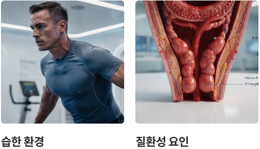 - 질환성 요인: 치질(치핵), 치열, 항문 주위 피부염 등이 가려움증의 직접적인 원인이 됩니다.