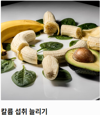 - 칼륨 섭취 늘리기: 나트륨 배출을 돕는 칼륨이 풍부한 바나나, 시금치, 아보카도를 매일 섭취하세요.