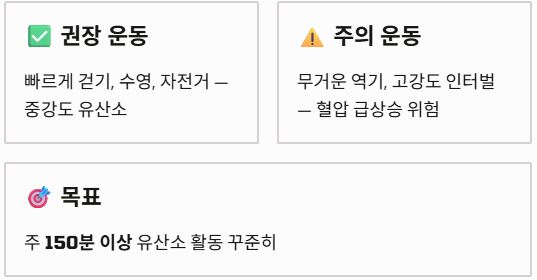 - 꾸준함의 법칙: 단발성 운동보다는 저강도라도 매일 실천하는 것이 혈압 안정에 훨씬 효과적입니다.