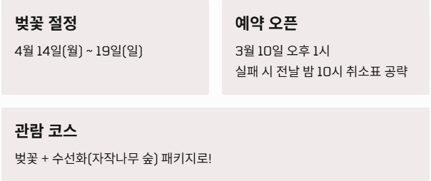✅ 관람 팁: 벚꽃과 수선화(자작나무 숲) 코스를 패키지로 즐길 것!