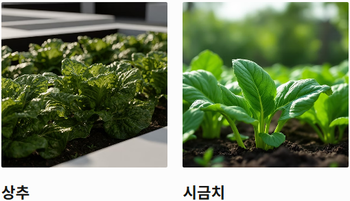 - 쌈채소(상추 등): 잎을 계속 수확할 수 있어 가성비가 가장 좋습니다.