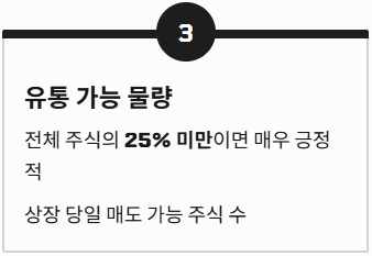 - 유통 가능 물량: 상장 당일 바로 팔 수 있는 주식 수입니다. 전체 주식의 25% 미만이면 매우 긍정적입니다.