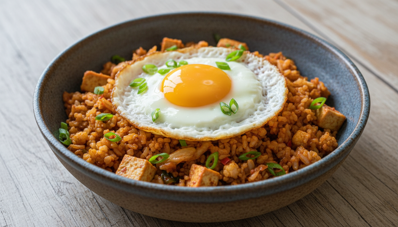 - 조리법: 코코넛 오일에 돼지고기를 볶다가 김치를 넣고 볶습니다. 콜리플라워 라이스를 넣고 함께 볶은 후, 반숙 계란 프라이를 올려 참기름과 김가루를 뿌리면 완성!